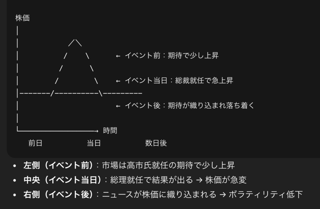 3. イベント後:新しい情報が市場に織り込まれ、株価が落ち着く